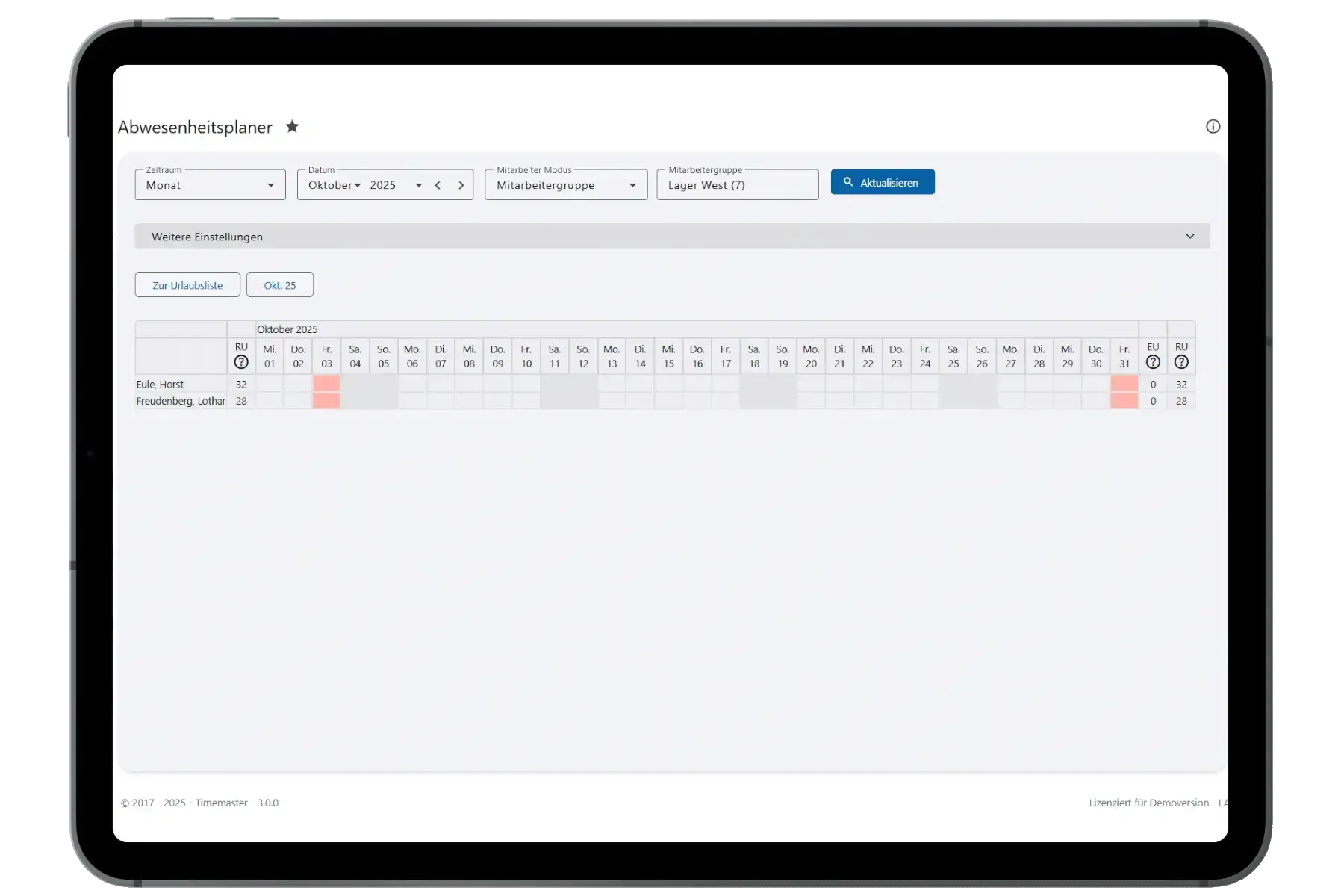 • Urlaubsliste