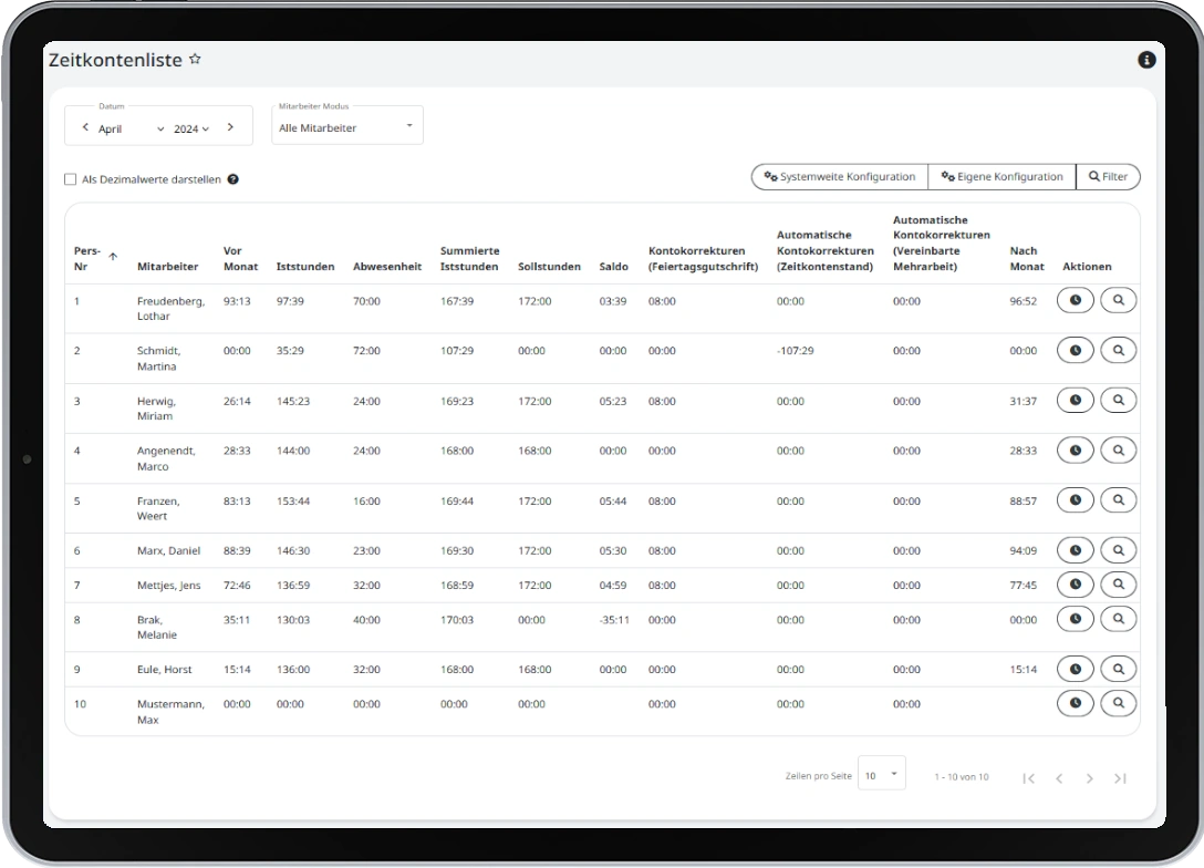 Nutzen Sie die Zeitsaldenliste, um die Zeiterfassung effizient zu verwalten und Ressourcen optimal zu steuern.