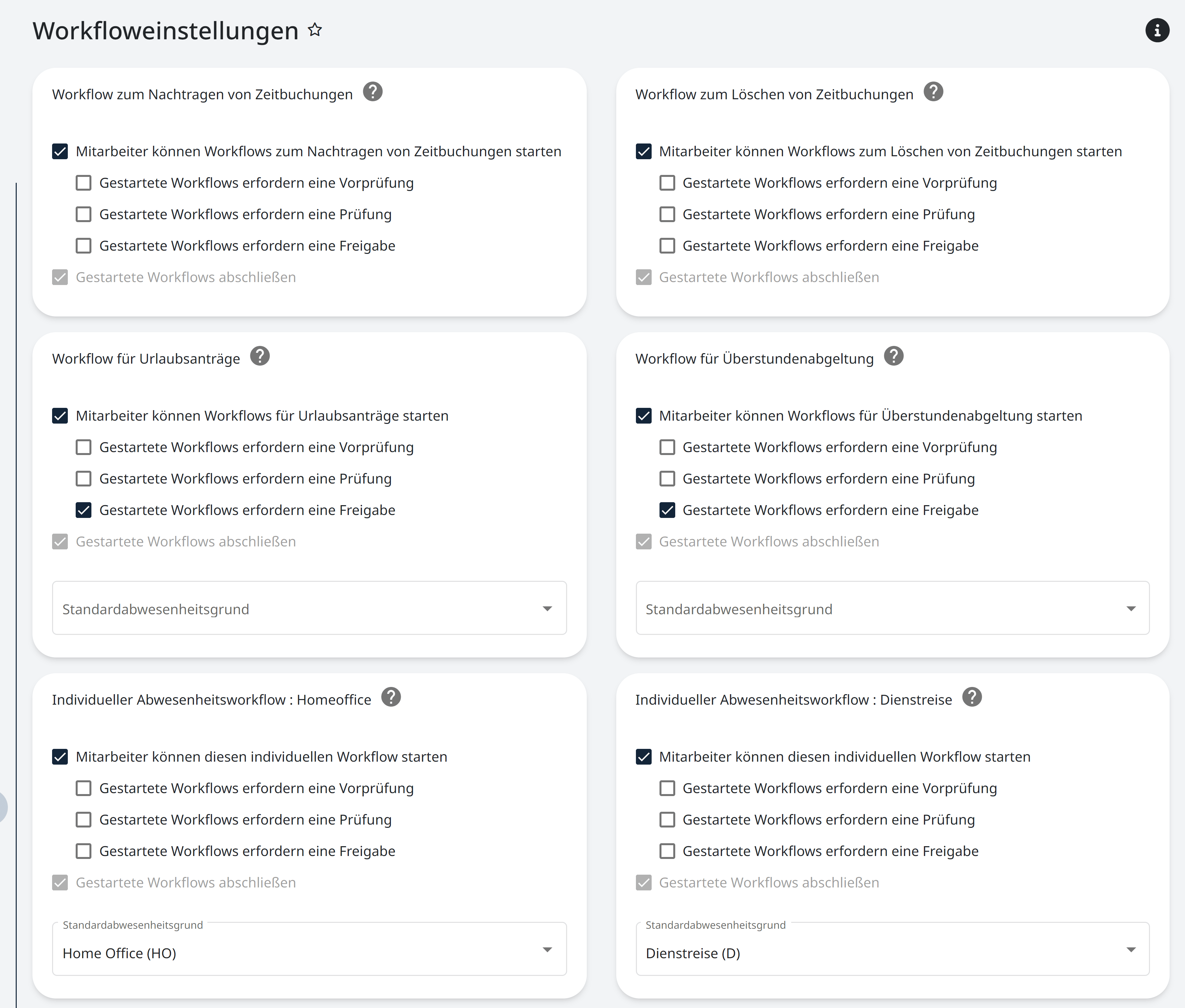 Einstufiger Workflow: mind. eine Workflow-Lizenz sowie das Mitarbeiter-Web-Modul