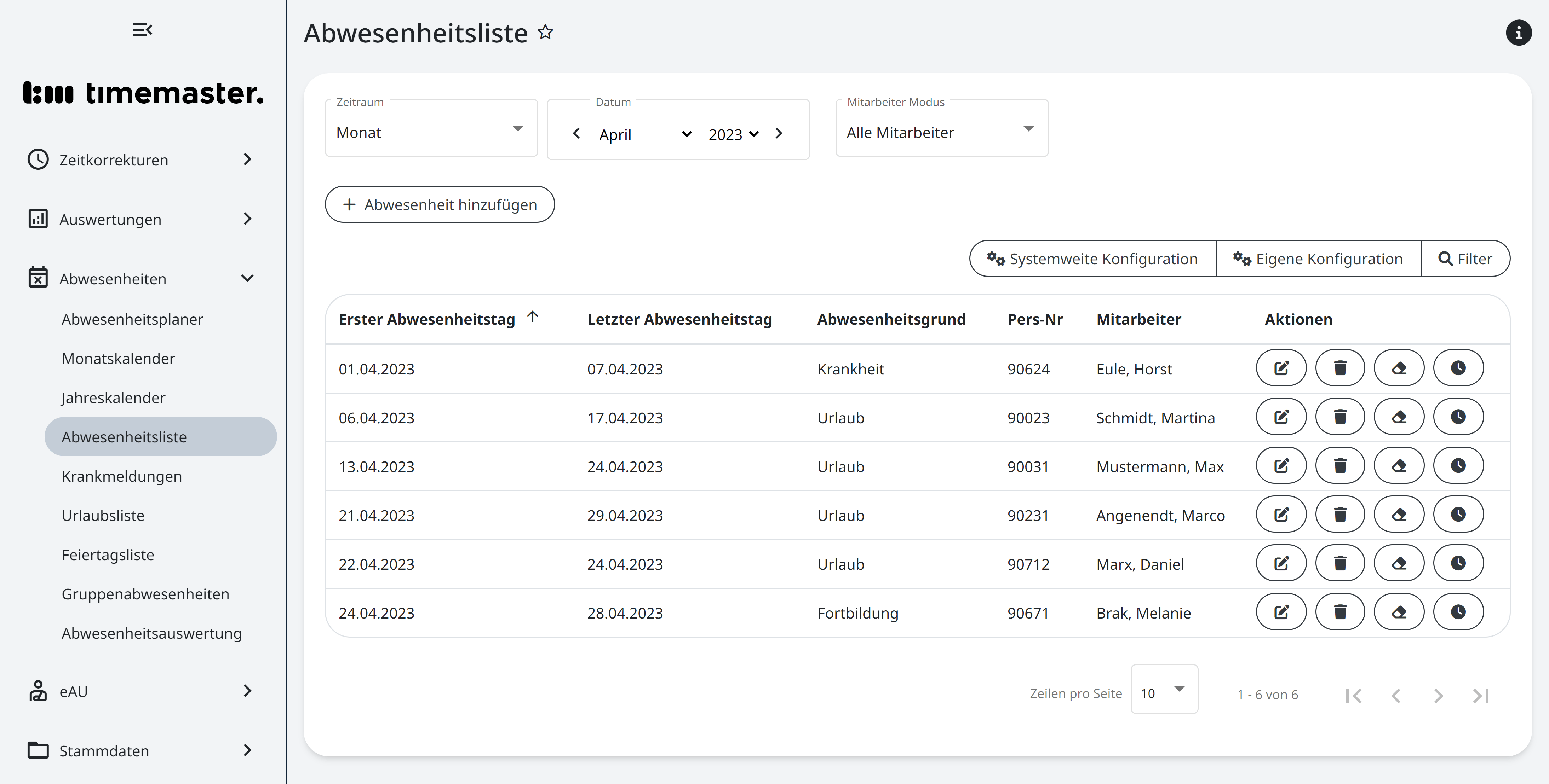 Eine gute Grundlage bietet bereits das Basismodul, welches sich aus der Hauptlizenz und einer Erweiterungslizenz für 10 Mitarbeiter zusammensetzt und Bestandteil jedes Startersets ist. Das Basismodul beinhaltet neben dem Personalstamm für die Eingabe einer Reihe von Personaldaten, wie Personalnummer, Geburtsdatum und Eintrittsdatum auch die Zeitsaldenliste als zentrales Element der Auswertung beinhaltet. Bei der Darstellung der Zeitsaldenliste auf dem Bildschirm kann die Bewertung der Zeitbuchungen durch die Zeitmodelle sofort überprüft werden.