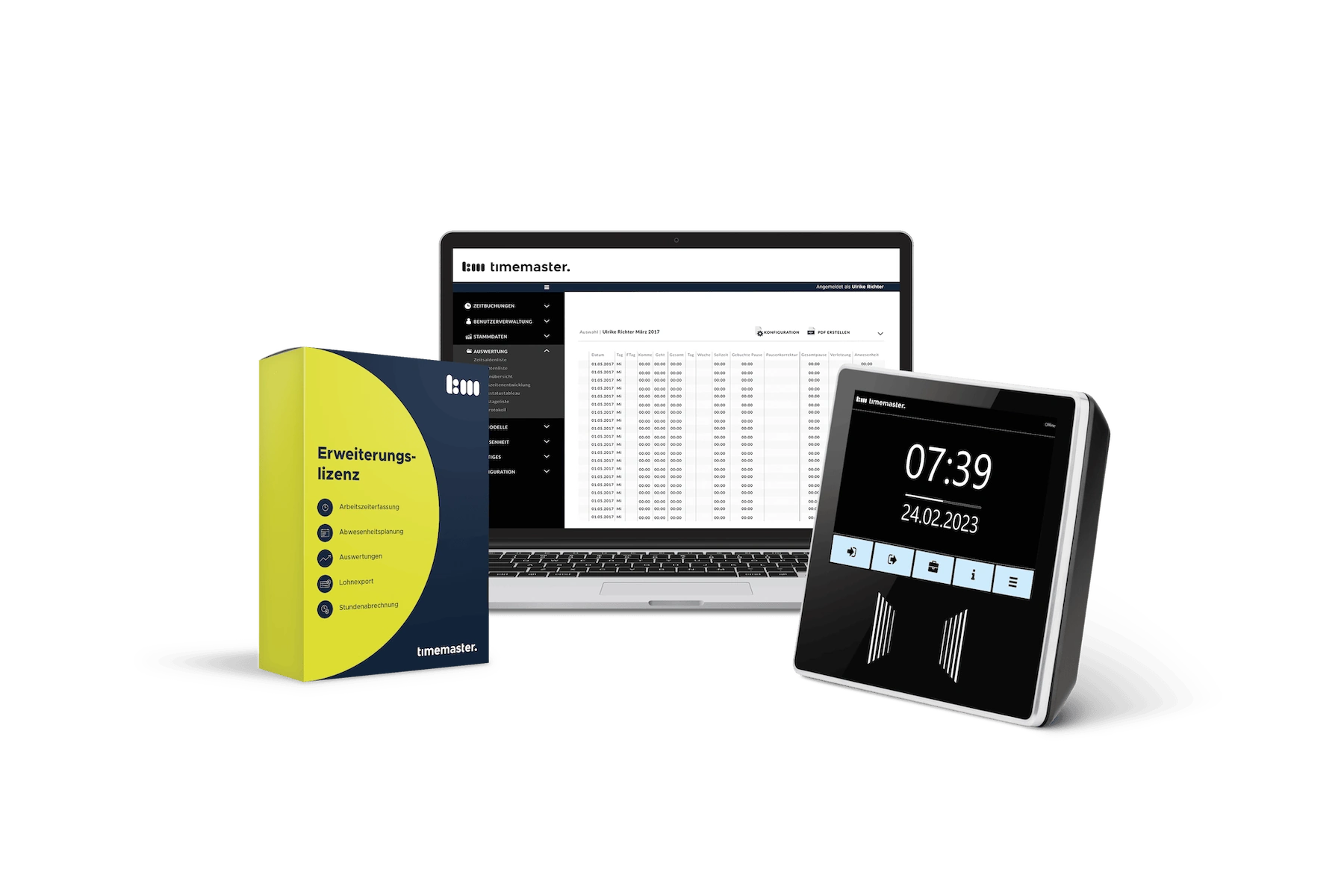 Dieses Starterset bietet Ihnen einen leichten Einstieg in Timemaster und lässt sich dank des modularen Konzepts bei Bedarf individuell um weitere Erfassungsterminals und Software-Module erweitern. Somit sind Sie zukünftig flexibel aufgestellt.