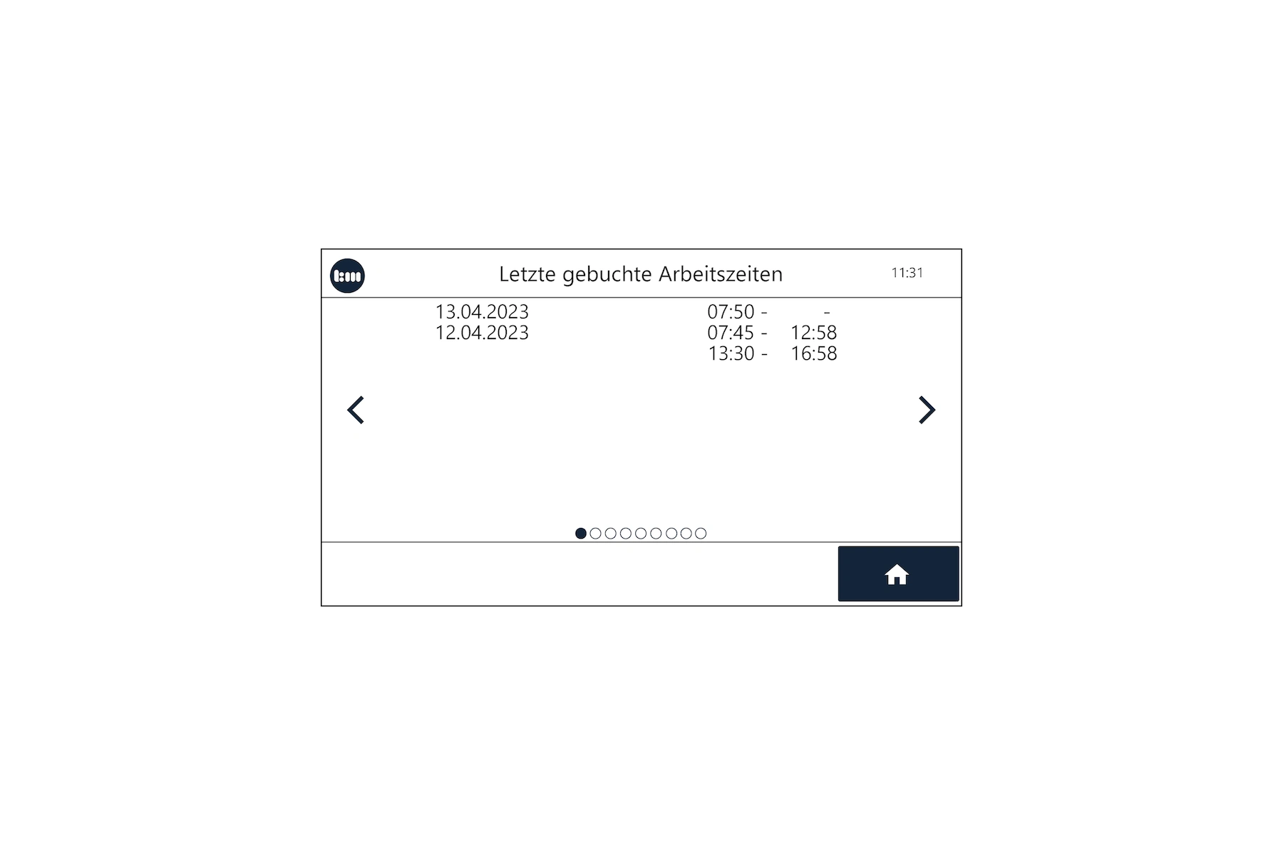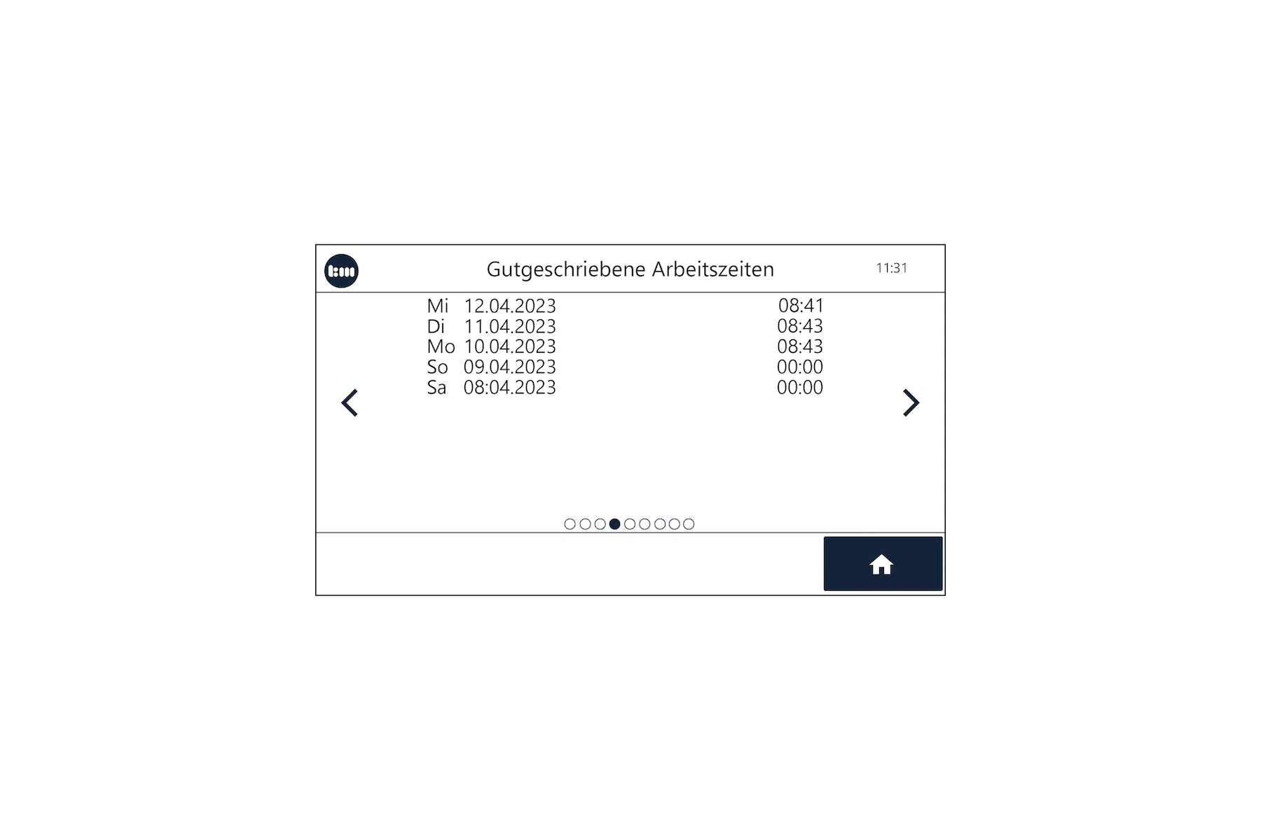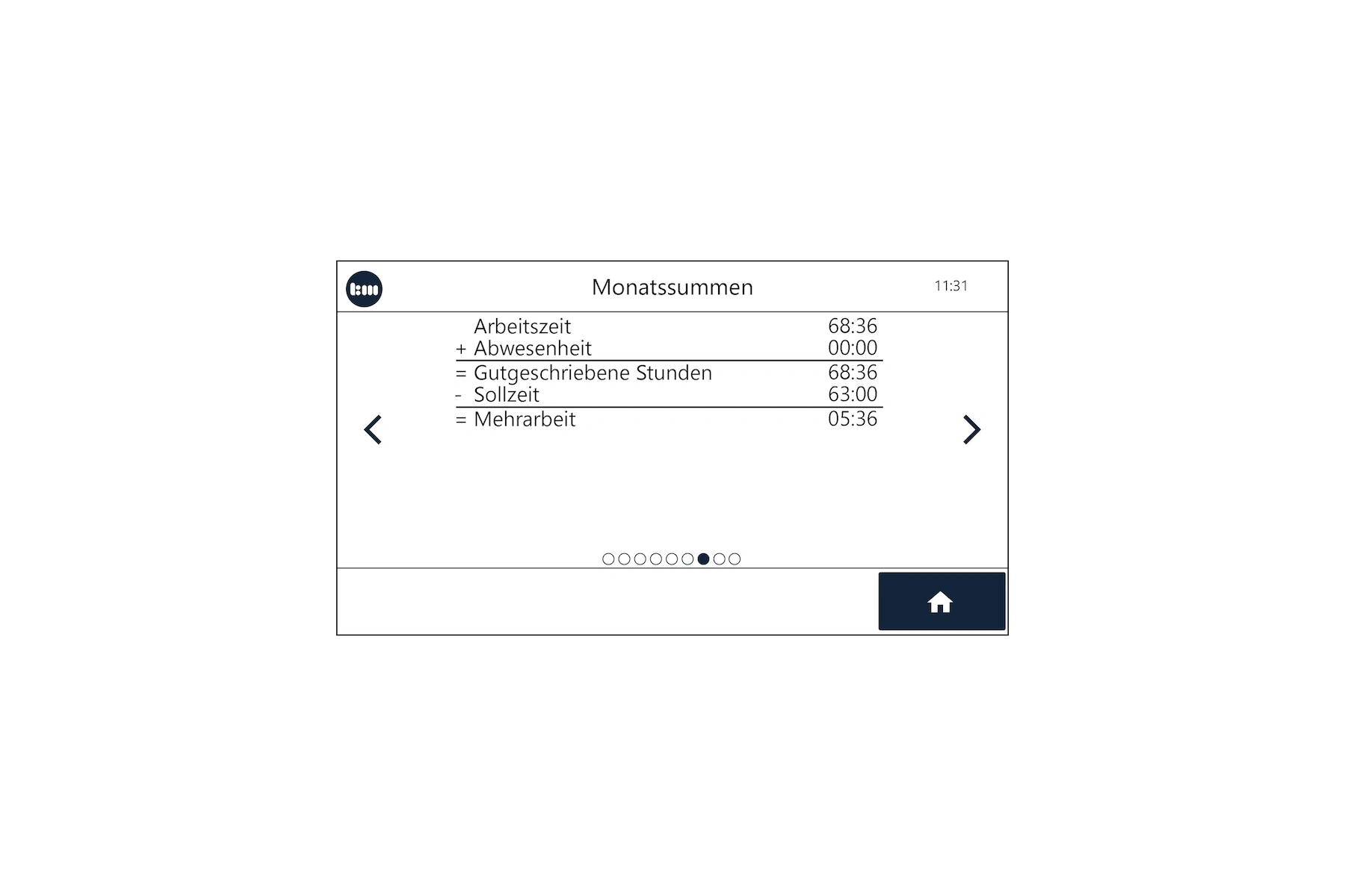 Die pro-Variante des Terminal plus7 bietet zudem zahlreiche Informationen, die vom Mitarbeiter direkt am Gerät abgefragt werden können. Das erhöht Transparenz und Akzeptanz bei den Mitarbeitern und entlastet die Personalabteilung von Anfragen. Insgesamt stehen 9 Ansichten zur Verfügung, die sich einzeln aktivieren bzw. deaktivieren lassen. Zusätzlich lässt sich eine erweiterte Buchungsbestätigung im Display ausgeben, die den Namen des Mitarbeiters sowie die Buchungszeit enthält.